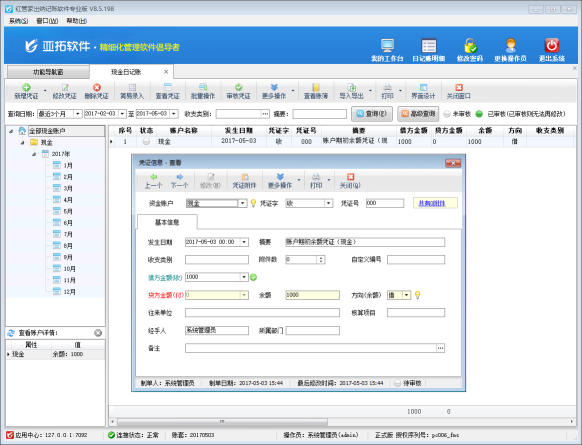 紅管家出納軟件是一款針對各類企事業(yè)單位財務(wù)出納記賬開發(fā)的,集現(xiàn)金日記賬記賬與點驗、銀行日記賬記賬與核帳、應(yīng)收應(yīng)付往來賬管理、票據(jù)管理(支票管理、承兌匯票管理)、發(fā)票管理、工資管理、員工借款管理、費用報銷管理等為一體的財務(wù)出納管理記賬軟件(出納管理軟件)。 許多用戶在使用軟件正式記賬之前都需要維護(hù)資金賬戶并錄入期初余