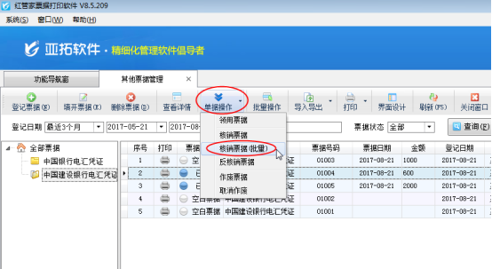 紅管家票據(jù)打印軟件是亞拓軟件針對(duì)企事業(yè)單位票據(jù)管理及打印需求而開發(fā)的一款票據(jù)管理軟件,主要包括支票管理、承兌匯票管理、其他票據(jù)管理(銀行進(jìn)賬單、電匯憑證等)、快遞單管理、萬(wàn)能票據(jù)打印、票據(jù)打印模板管理、票據(jù)查詢檢索等功能。 其他票據(jù)管理可以對(duì)其他票據(jù)進(jìn)行從登記—》領(lǐng)用—》填開—》核銷的流程化管理,只有已領(lǐng)用的票據(jù)才可以核銷。