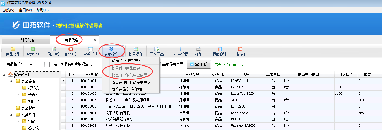 亞拓管理軟件、紅管家送貨單軟件、倉庫管理軟件都支持在“基礎資料”—》“商品信息”中維護商品的規(guī)格信息,軟件默認允許開單可以直接在單據明細中修改商品規(guī)格,為了避免開單修改商品規(guī)格,軟件可以設置開單時單據明細中的商品規(guī)格不允許修改,我們以送貨單軟件為例示范下如何設置? 首先我們在“基礎資料”—》“商品信息