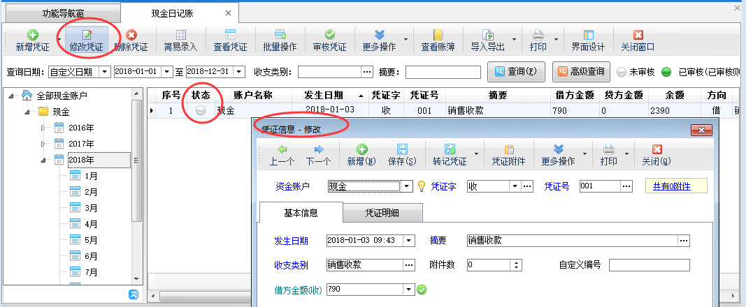 紅管家出納記賬軟件是一款針對(duì)各類企事業(yè)單位財(cái)務(wù)出納記賬開發(fā)的,集現(xiàn)金日記賬記賬與點(diǎn)驗(yàn)、銀行日記賬記賬與核帳、應(yīng)收應(yīng)付往來賬管理、票據(jù)管理(支票管理、承兌匯票管理)、發(fā)票管理、工資管理、個(gè)人借款管理為一體的出納管理記賬軟件。 紅管家出納記賬軟件中憑證審核后,不允許直接修改(如下圖一所示)。但是部分客戶需要對(duì)已審核的憑證進(jìn)行修改