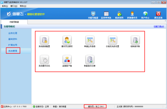 信管飛倉庫管理軟件可以對銷售單列表、采購單列表、銷售訂單列表、采購訂單列表進行標記備注。如果不允許操作員標記單據備注,可以對操作員取消“標記單據備注”的權限。下面我們介紹一下在信管飛倉庫管理軟件中設置操作員不可標記單據備注的操作步驟。 系統管理員登錄軟件后,在功能導航窗點“系統管理”—》“操作員及授權”即可進入“操作員管理及