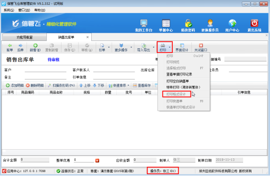 亞拓軟件自主研發(fā)的信管飛RMS、信管飛送貨單軟件、信管飛票據(jù)打印軟件、信管飛倉庫管理軟件都支持自定義設計打印模板,打印模板設計完成后,為了避免操作員修改錯打印模板,軟件可以設置操作員的打印模板設計權限。(系統(tǒng)管理員默認具有所有權限,不允許修改)。 以信管飛倉庫管理軟件為例,介紹一下如何控制操作員的打印模板設計權限。在功能導航