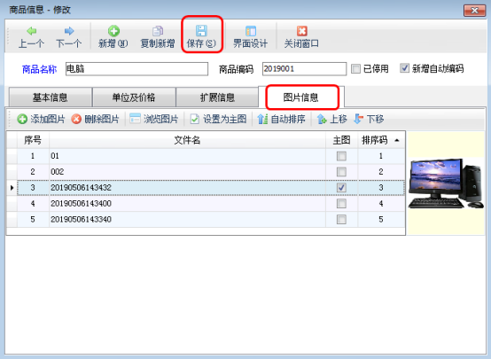信管飛倉(cāng)庫(kù)管理軟件、信管飛RMS(進(jìn)銷(xiāo)存軟件)都可以對(duì)商品信息進(jìn)行管理,都支持上傳商品圖片,以便用戶(hù)查看商品圖片信息。本篇文章以信管飛倉(cāng)庫(kù)管理軟件為例介紹一下如何上傳商品圖片。 在功能導(dǎo)航窗點(diǎn)“基礎(chǔ)資料”—》“商品信息”即可進(jìn)入“商品信息”界面,對(duì)商品進(jìn)行新增或修改時(shí)可以編輯商品信息、上傳商品圖片信息。以商品“電腦”為例,對(duì)