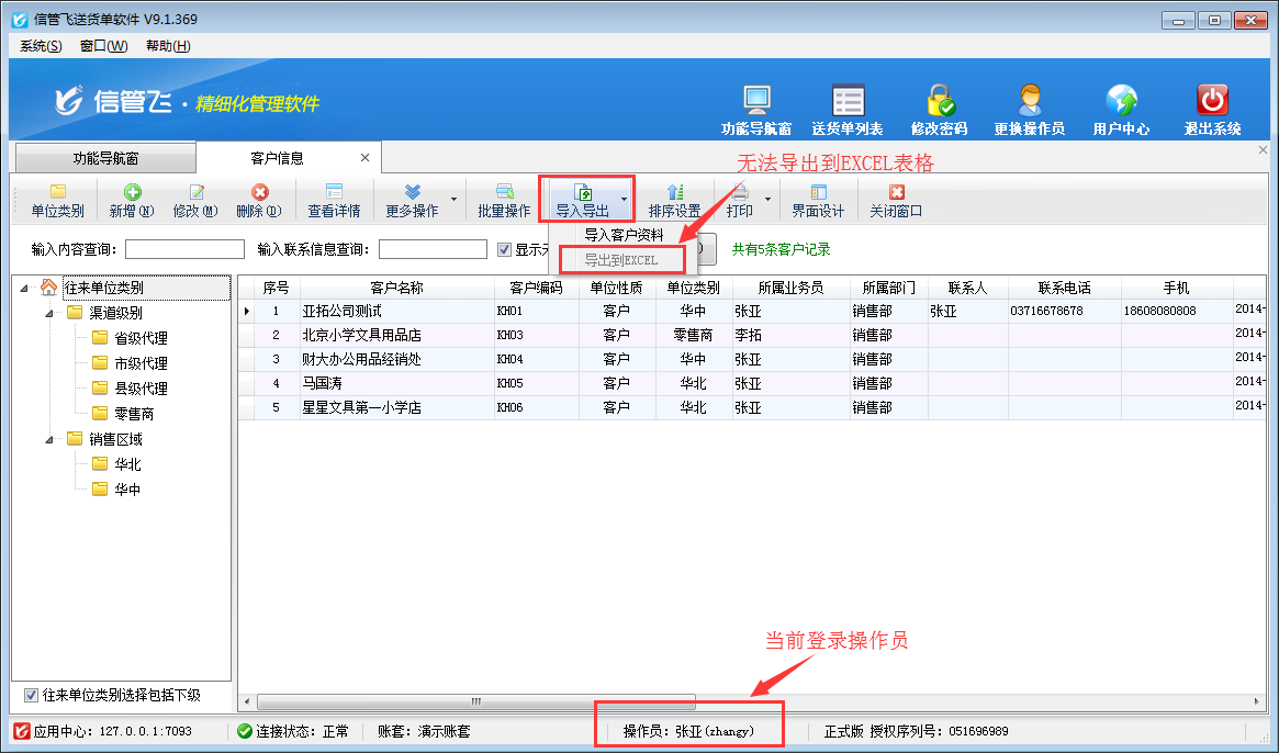 信管飛送貨單軟件、信管飛RMS、信管飛倉(cāng)庫(kù)管理軟件等都支持管理基礎(chǔ)資料信息和允許設(shè)置多個(gè)操作員進(jìn)行登錄軟件。軟件支持將基礎(chǔ)資料信息以EXCEL的形式導(dǎo)出放到自定義的文件夾內(nèi)以供備份或保存,如果需要設(shè)置操作員不允許導(dǎo)出客戶(hù)信息,如何設(shè)置?本文以信管飛送貨單軟件為例,示范下如何設(shè)置操作員不可導(dǎo)出客戶(hù)信息。 在功能導(dǎo)航窗點(diǎn)擊“系統(tǒng)