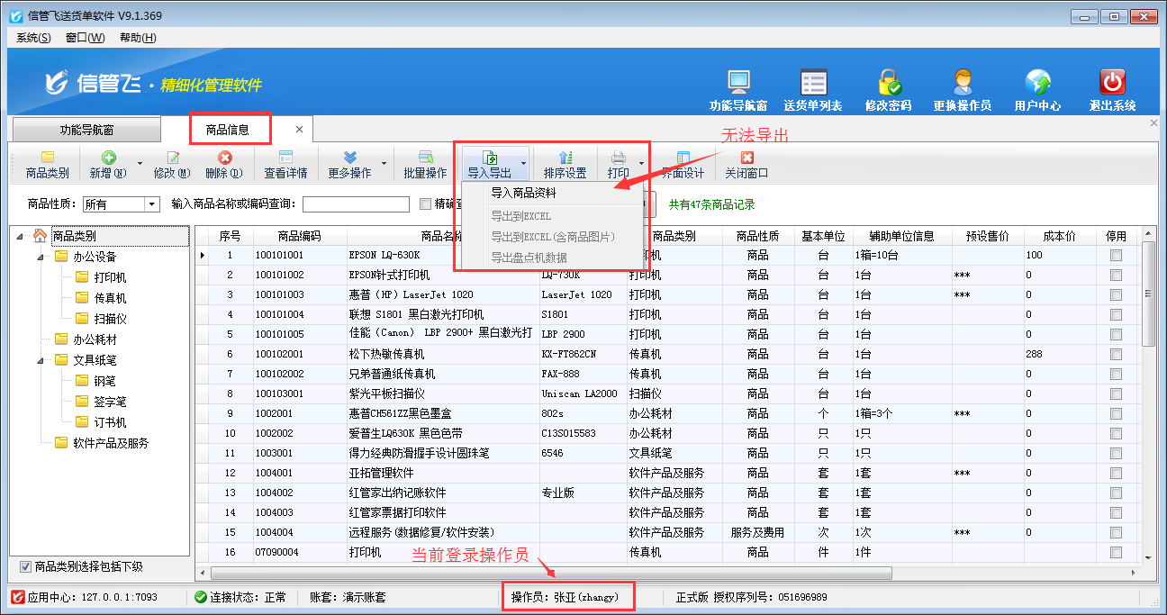 信管飛送貨單軟件、信管飛RMS、信管飛倉(cāng)庫(kù)管理軟件等都支持管理基礎(chǔ)資料信息和允許設(shè)置多個(gè)操作員進(jìn)行登錄軟件。軟件支持將基礎(chǔ)資料信息以EXCEL的形式導(dǎo)出放到自定義的文件夾內(nèi)以供備份或保存,如果需要設(shè)置操作員不允許導(dǎo)出商品信息,如何設(shè)置?本文以信管飛送貨單軟件為例,示范下如何設(shè)置操作員不可導(dǎo)出商品信息。 在功能導(dǎo)航窗點(diǎn)擊“系統(tǒng)