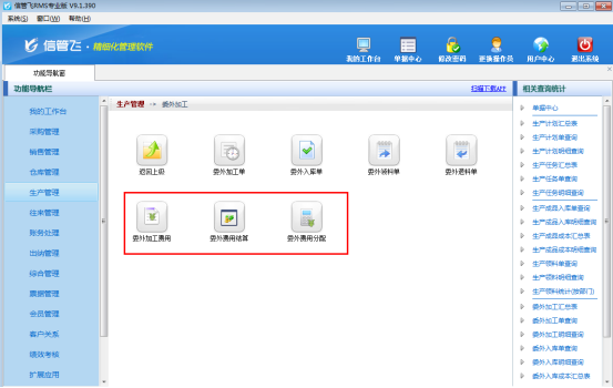 實際的企業生產業務中經常會涉及委外代加工業務,有時候需要委托外部工廠幫我們生產一些配件,有時候需要幫忙生成半成品,然后委外生產的成品或半成品,再進入我們車間進行再加工(如包裝封箱、或二次加工等)。信管飛RMS標準版、專業版及以上版本可以購買 “委外加工管理”擴展功能模塊來管理此業務。 在功能導航窗,點擊“生產管理”—》“委外