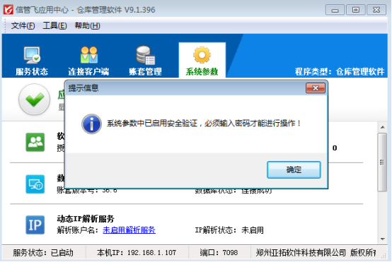 亞拓軟件采用新架構技術開發的信管飛RMS(進銷存軟件)、信管飛送貨單軟件、信管飛出納記賬軟件、信管飛倉庫管理軟件等都包括應用中心及客戶端程序,“應用中心”是系統的管理控制中心,集中管理連接客戶端和賬套數據庫,從而實現數據的集中存儲和實時共享,應用中心主要包括運行狀態管理、連接客戶端管理、賬套管理、系統參數設置以及其他管理功能。