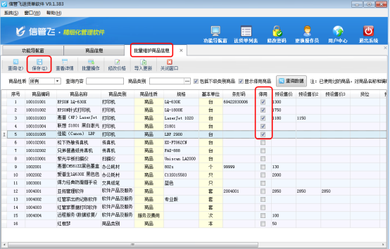 信管飛RMS、信管飛倉庫管理軟件及信管飛送貨單軟件都可以對商品信息進行管理,如果有些商品開過了單據,您以后不再使用該商品進行開單了,可以把這些商品設置為停用狀態。已停用的商品無法被用于開單,選擇商品窗口可以隱藏已停用的商品。當需要停用的商品比較多時,一個一個進行停用比較耗時,如何批量停用商品呢?本篇文章以信管飛送貨單軟件為例詳細介紹一下如何批量停用商品。&nb