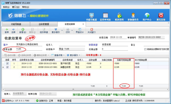 • 信管飛送貨單軟件中客戶的應收款如何抵消客戶預付款?