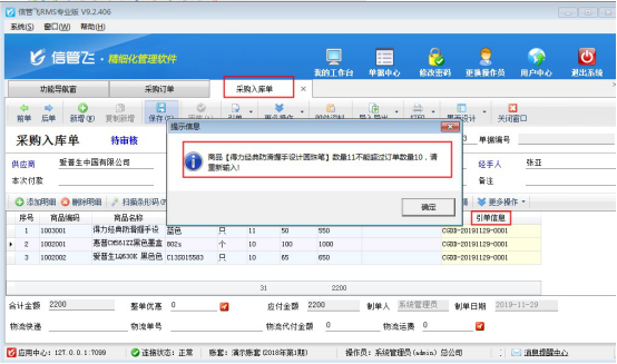 • 信管飛RMS軟件如何設置“采購數量不可超過訂單數量“?