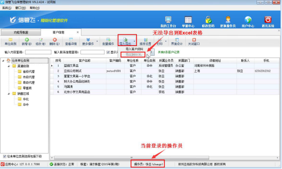 信管飛送貨單軟件、信管飛RMS、信管飛倉庫管理軟件等都支持管理基礎資料信息和允許設置多個操作員進行登錄軟件。軟件支持將基礎資料信息以EXCEL的形式導出放到自定義的文件夾內以供備份或保存,如果需要設置操作員不允許導出客戶信息,如何設置?本文以信管飛倉庫管理軟件為例,介紹下如何設置操作員不可導出客戶信息。 在功能導航窗點擊“系