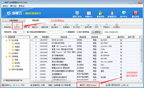 信管飛送貨單軟件、信管飛RMS(進銷存管理軟件)、信管飛倉庫管理軟件等都支持維護商品信息和允許設置多個操作員登錄軟件,為了避免開單時不同操作員同時新增商品出錯,軟件支持設置操作員權限,可以設置操作員開單時不能直接新增商品信息只能選擇添加好的商品信息。    以信管飛倉庫管理軟件為例,示范下如何設置操作員不能新增商品信息。