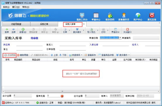 信管飛倉庫管理軟件、信管飛RMS軟件等支持管理倉庫庫存,倉庫庫存的增減根據(jù)對應(yīng)的采購入庫單和銷售出庫單審核后自動(dòng)計(jì)算,有部分用戶下采購單時(shí)先提交一個(gè)訂單,然后采購員根據(jù)訂單進(jìn)行實(shí)際采購,采購?fù)瓿珊筮M(jìn)行入庫操作,為避免手動(dòng)輸入出錯(cuò),軟件支持設(shè)置采購入庫單只能通過引用訂單生成。本文以“信管飛倉庫管理軟件”為例,示范下如何進(jìn)行設(shè)置?