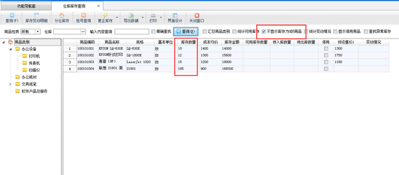信管飛倉庫管理軟件、信管飛RMS支持管理倉庫庫存,可在倉庫庫存查詢界面查詢當(dāng)前商品庫存數(shù)量,軟件支持設(shè)置在倉庫庫存查詢時(shí)默認(rèn)不顯示庫存為0的商品,方便匯總有庫存的商品信息。本文以信管飛RMS為例,示范下如何設(shè)置倉庫庫存查詢默認(rèn)不顯示庫存數(shù)量為0的商品。 軟件默認(rèn)倉庫庫存查詢是顯示庫存數(shù)量為0的商品,查詢?nèi)缦聢D所示: