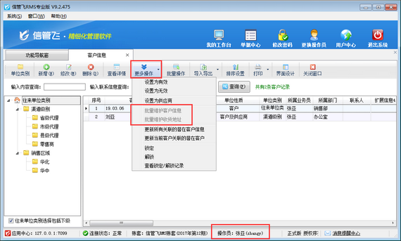 信管飛RMS、信管飛送貨單軟件、信管飛倉庫管理軟件等都支持批量維護客戶信息,可批量維護客戶信息的名稱、聯系人、電話、地址等信息。另外軟件中也支持設置操作員不可批量維護客戶信息,本篇文章我們以進銷存軟件為例詳細介紹一下如何設置操作員不可批量維護客戶信息? 在功能導航窗點“系統管理”—》“操作員及授權”即可進入“操作員管理及授權