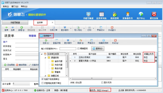 信管飛送貨單軟件、信管飛RMS軟件等都支持增加可登錄的操作員以及設置操作員的權限,有客戶需要操作員僅能對自己的客戶進行開單操作,無其他操作權限,這種應該如何控制?文本以“信管飛送貨單軟件”為例進行示范下。 演示視頻觀看鏈接:送貨單軟件如何設置操作員僅能開單和選擇自己的客戶權限?
