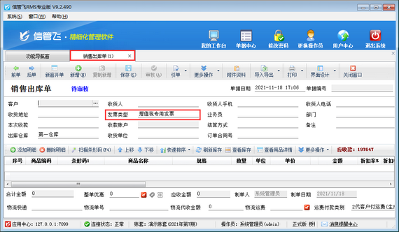 • 信管飛RMS軟件中開單界面如何設置默認發票類型?